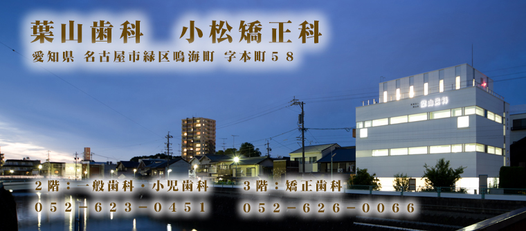 | ■ 葉山歯科 小松矯正科について 愛知県名古屋市緑区鳴海町字本町58 矯正歯科 2階 一般歯科・小児歯科 052ー623ー0451 3階 矯正歯科 052ー626ー0066 矯正治療を受診される方は 052-626-0066へお電話ください このホームページは当院3階の矯正科専門です。 ▶診療時間 月〜金 午前 9:00 〜 13:00 午後 14:30 〜 18:30 土 曜 午前 9:00 〜 13:00 午後 14:00 〜 18:00 ▶休診日:木、日祝日 (学会、手術などの時も休診します) |